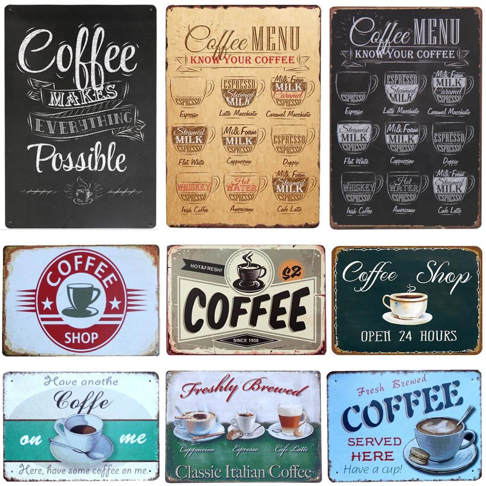 Coffee Menu Vintage Cafe Tin Sign Retro Metal Plate Painting Classical Iron Picture Wall Decoration For Coffee Shop Plaques Signs Aliexpress